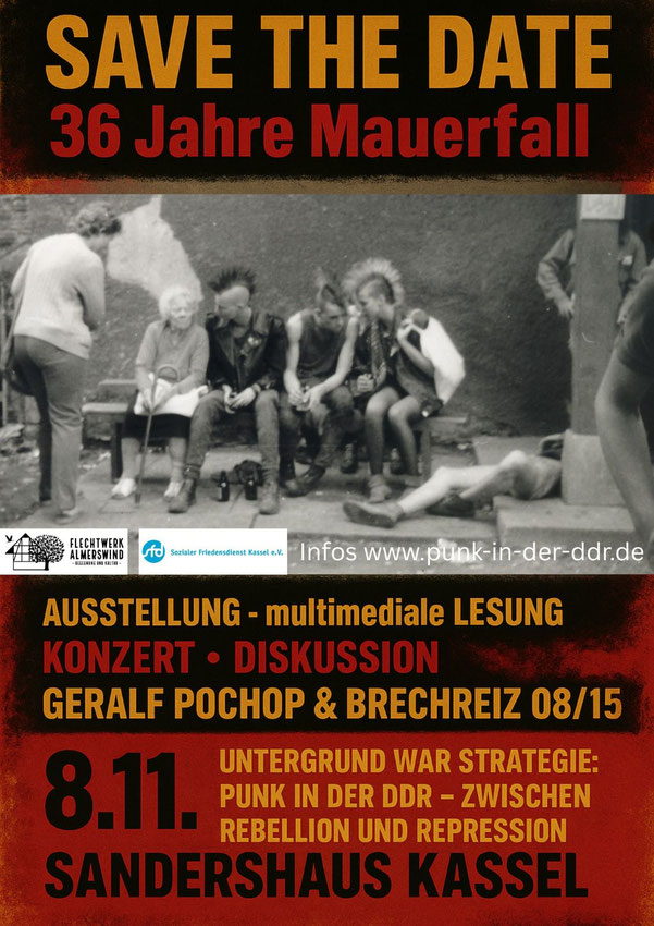 5.11.2022 Frohburg - 18 Uhr multimediale Lesung "Untergrund war Strategie" + Ausstellung "Aus Grau wird Bunt" in der Forellenstube. Im Anschluss spielt die DDR-Punk-Band Brechreiz 08/15 (gefördert von der Kulturstiftung Sachsen)