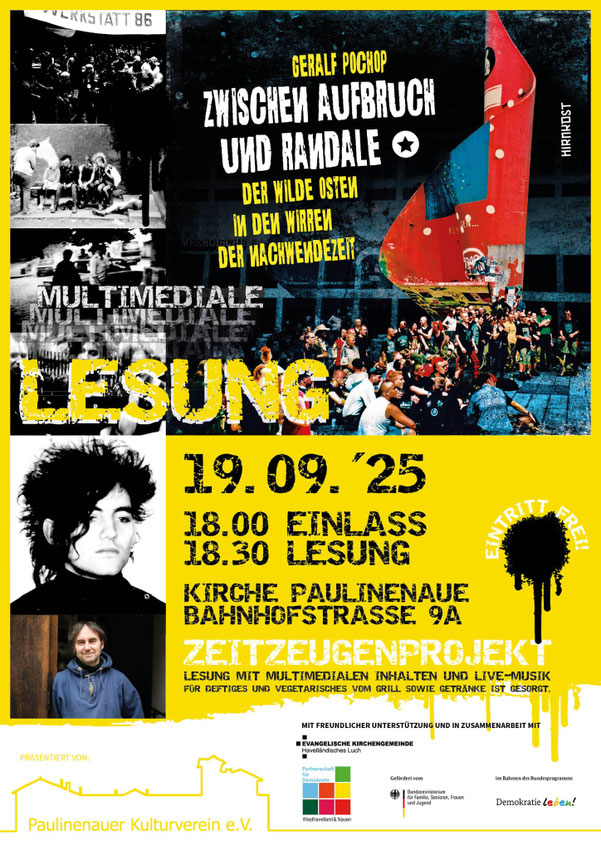 19.09.2025 Paulineaue - multimediale Lesung "Zwischen Aufbruch und Randale" in der Kirche Paulineaue (gefördert von Partnerschaften für Demokratie)