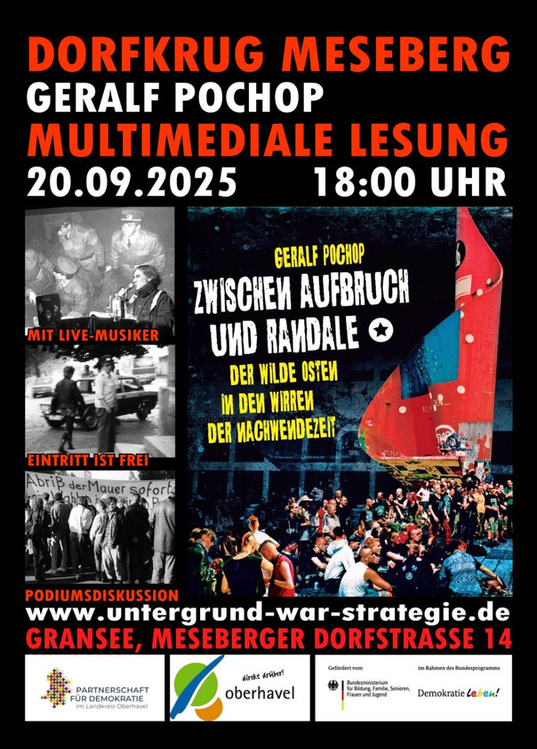 20.09.2025 Gransee - multimediale Lesung "Zwischen Aufbruch und Randale" + Podiumsdiskussion im Dorfkrug Meseberg (gefördert von Partnerschaften für Demokratie)