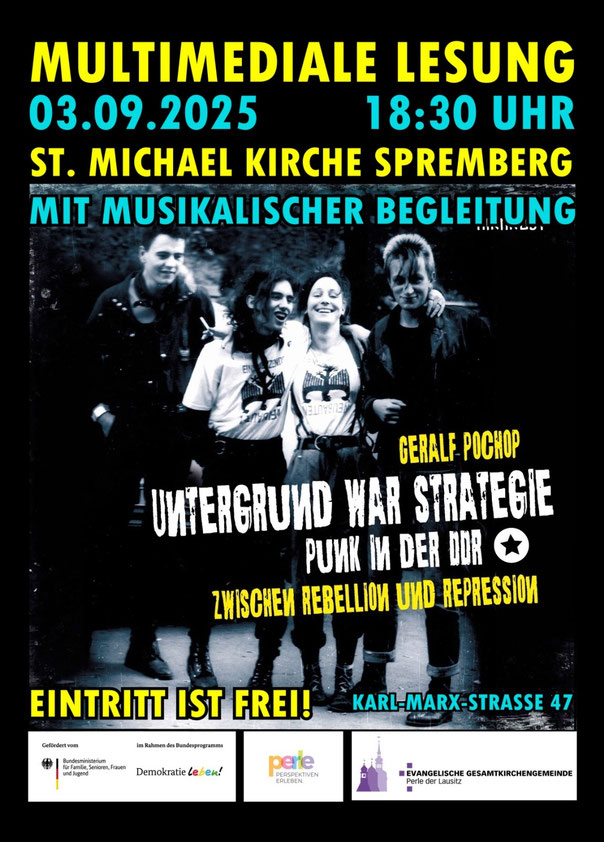 1.9.2022 Spremberg - 17:30 Uhr multimediale Lesung "Untergrund war Strategie" + Zeitzeugengespräch beim PunkOiRama-Festival (gefördert von Partnerschaften für Demokratie & dem Koordinierenden Zeitzeugenbüro)