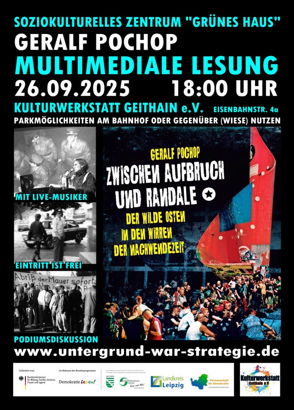 26.09.2025 Geithain - multimediale Lesung "Zwischen Aufbruch und Randale" im Grünen Haus (Kulturwerkstatt) (gefördert von Partnerschaften für Demokratie)